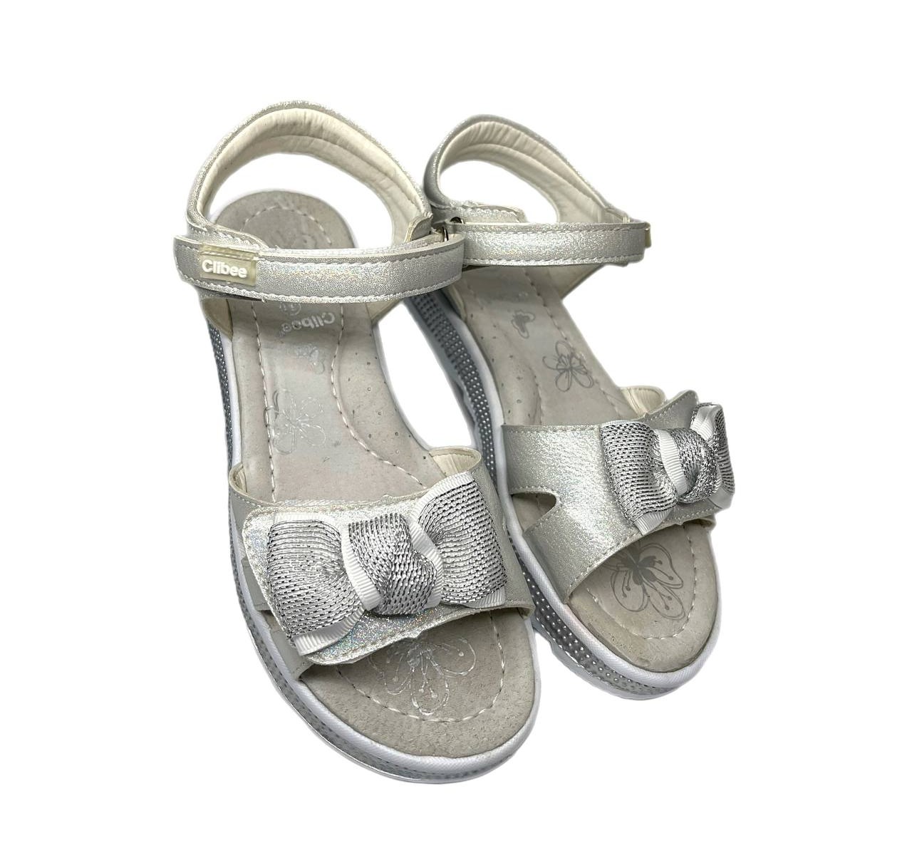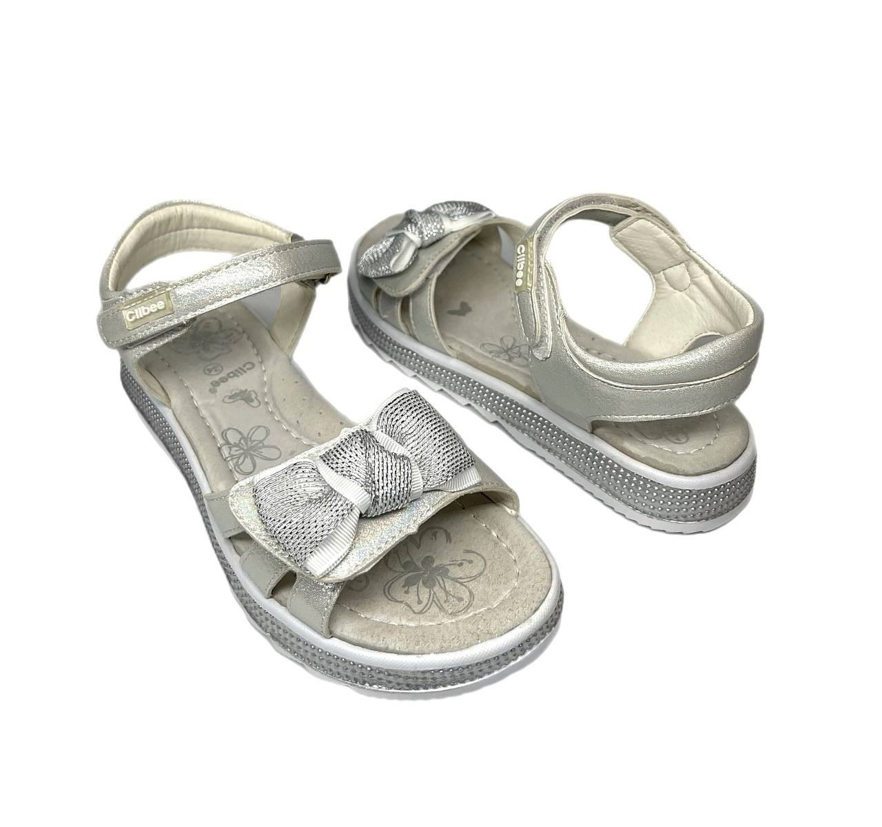 Босоніжки сріблясті з бантиком Clibee