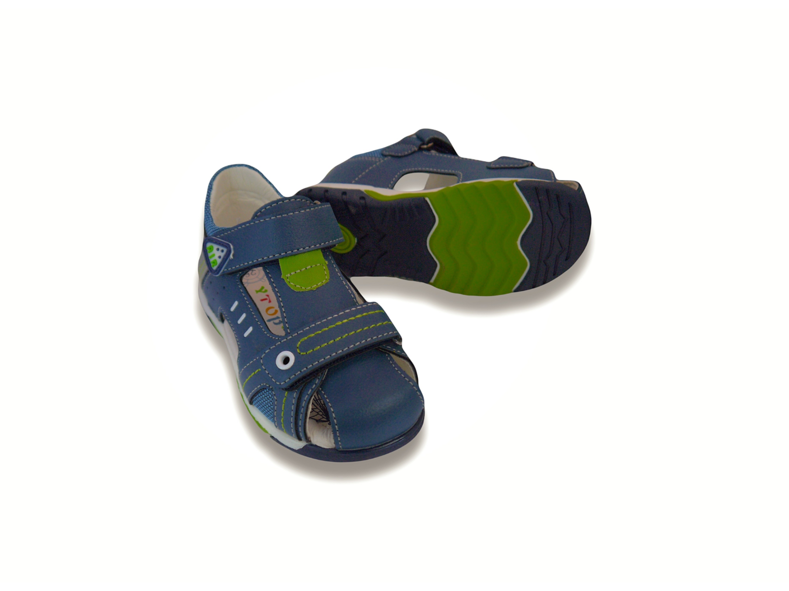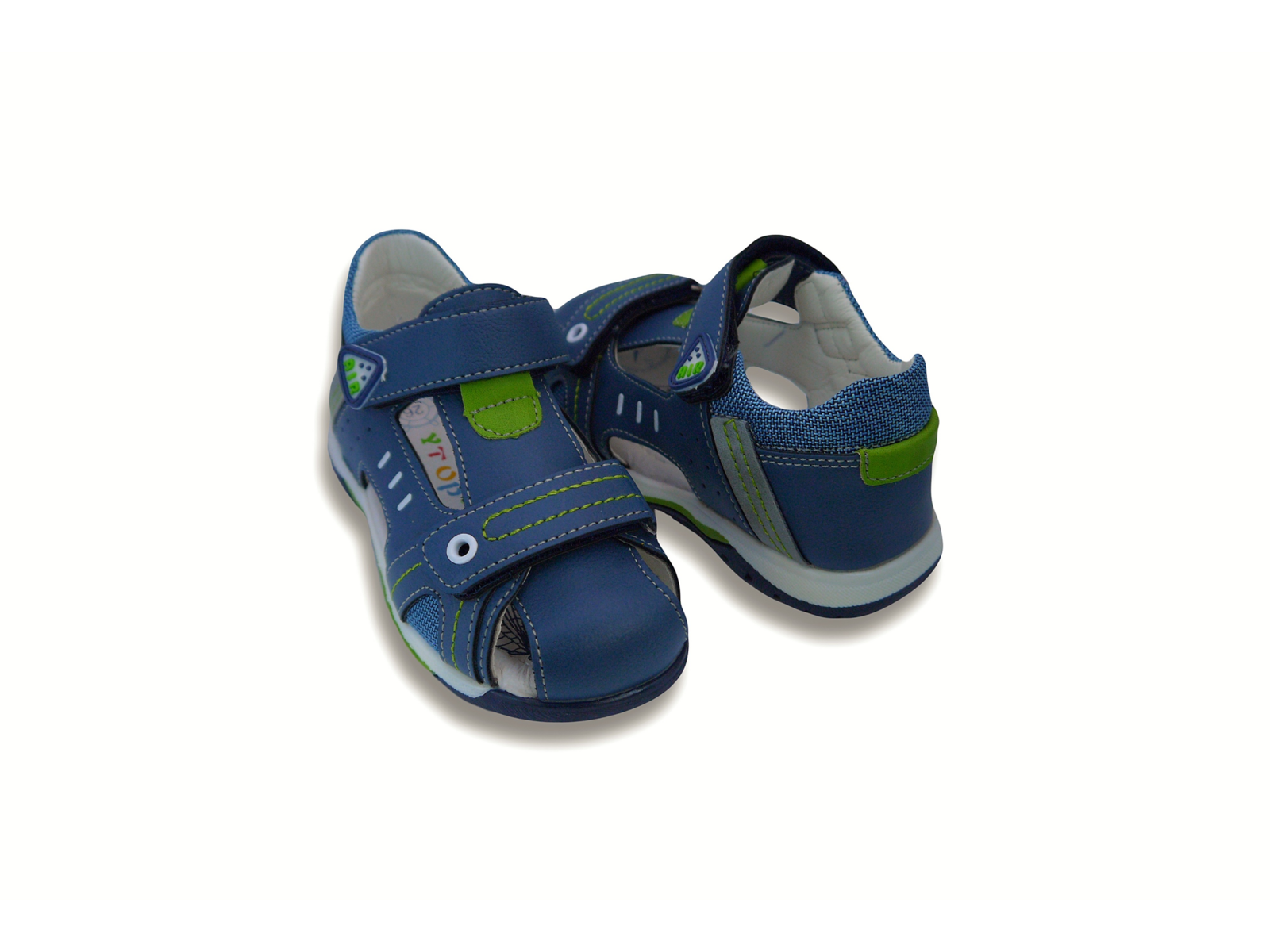 Босоніжки сині з салатовим закриті
