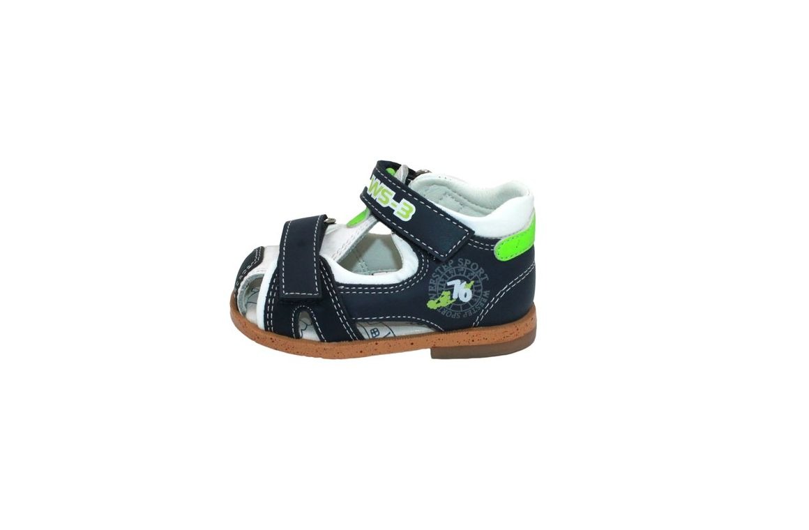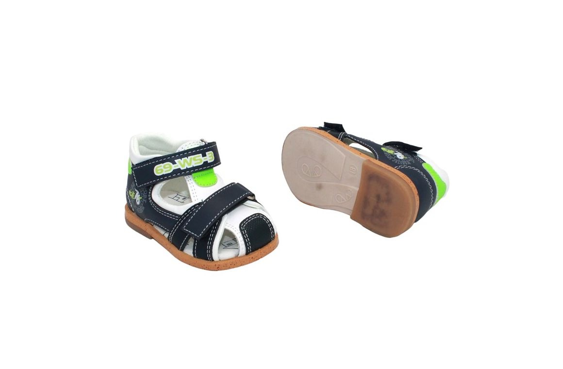 Босоножки Weestep для мальчиков- повседневная обувь, сочетающая в себе одновременно классический и спортивный стиль. Закрытый носок, жесткий задник, прочная подошва делают модель максимально практичной. Верх босоножек выполнен из экокожи, внутри- натуральная кожа. Выполнены в сине-белой цветовой гамме, с насыщенными салатовыми вставками. Стелька с профилактическим супинатором. Застегиваются сверху на две липучки. Гармонично сочетаются с элегантной и повседневной одеждой.
