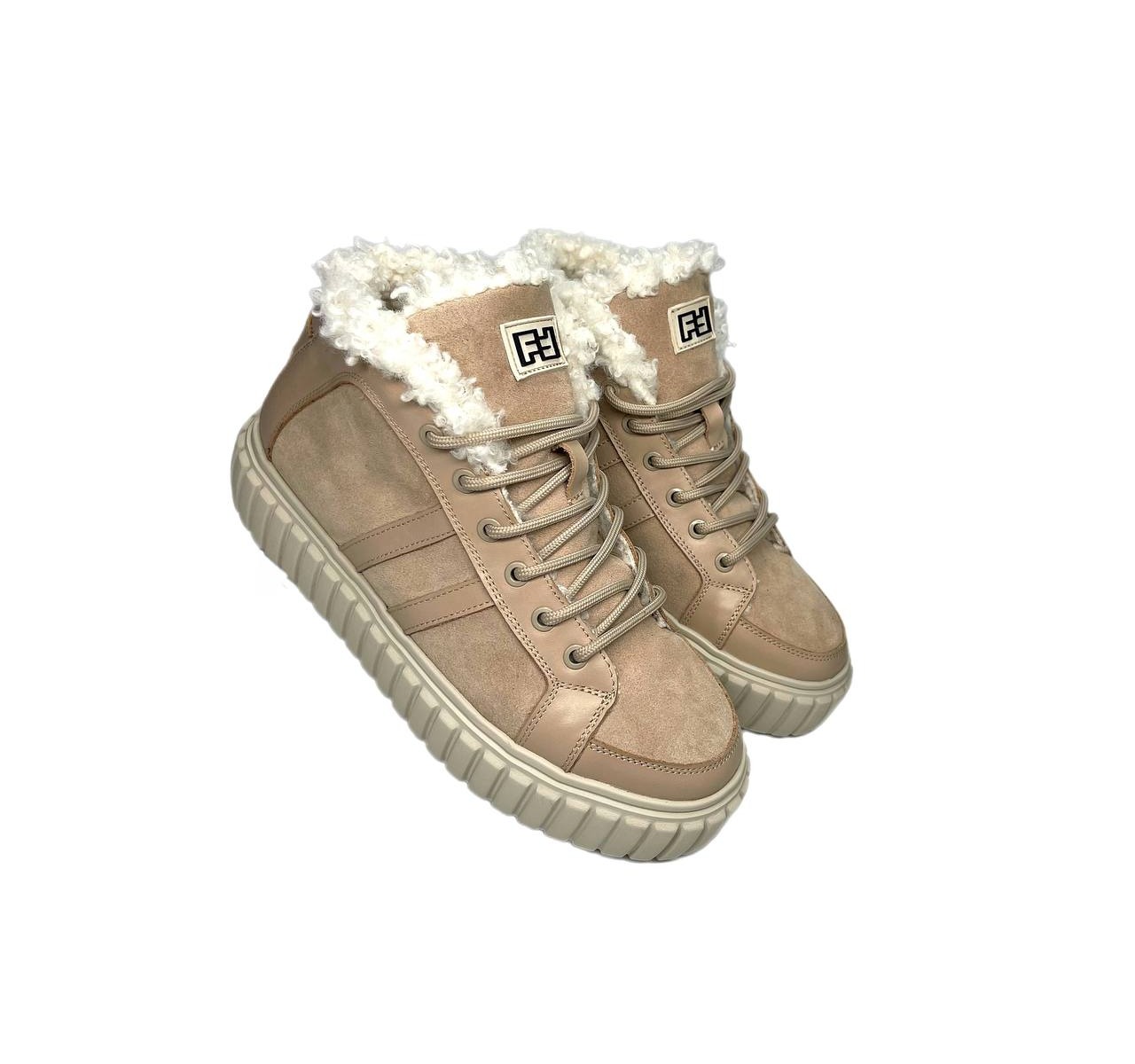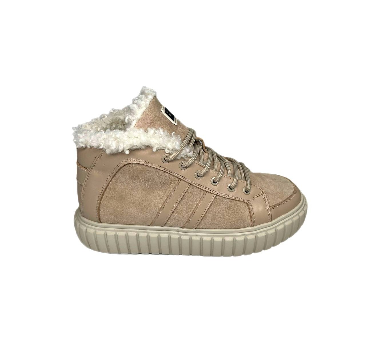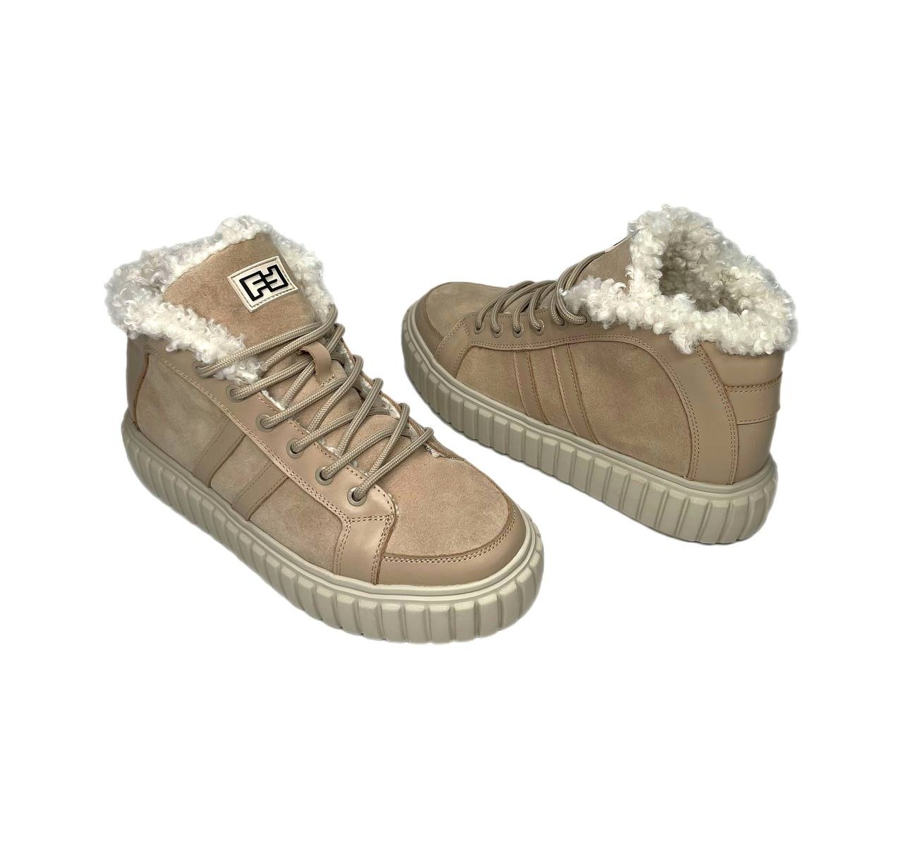 Черевики бежеві з натуральної шкіри та замші , всередині хутро Sandalik