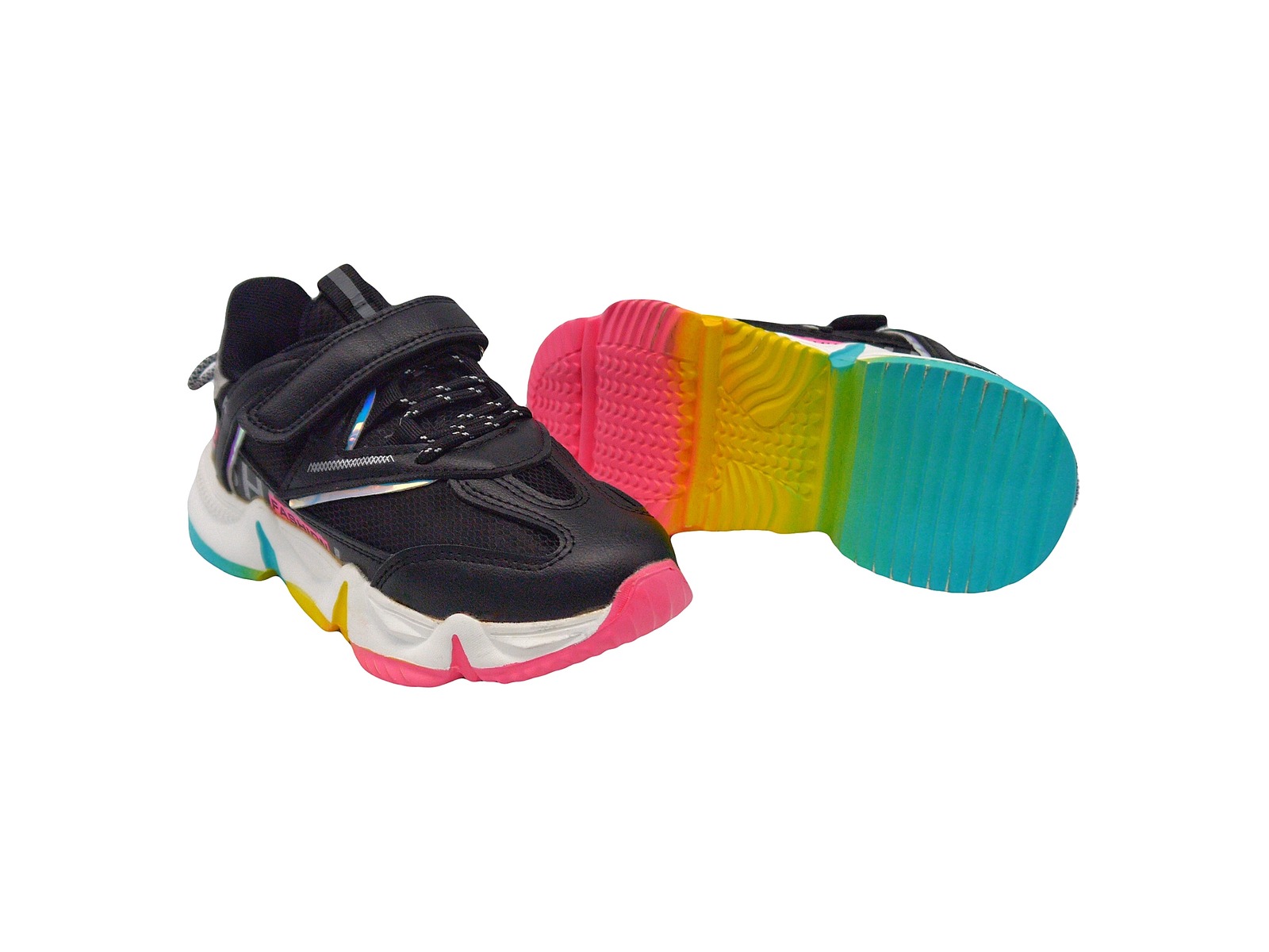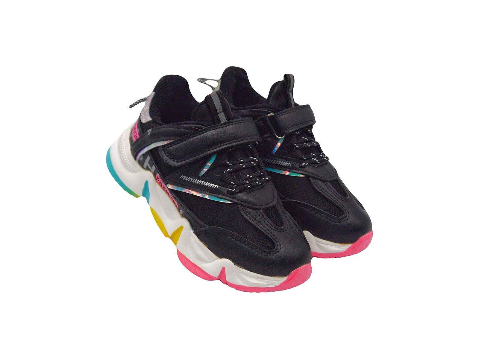 Матеріал виробу- еко шкіра та спотивний «дайвінг», висока різнокольорова стильна підошва одразу привертає увагу. В середині - шкіряна устілка, м’яка обробка виробу- щоб не натирались ніжки у дітей.