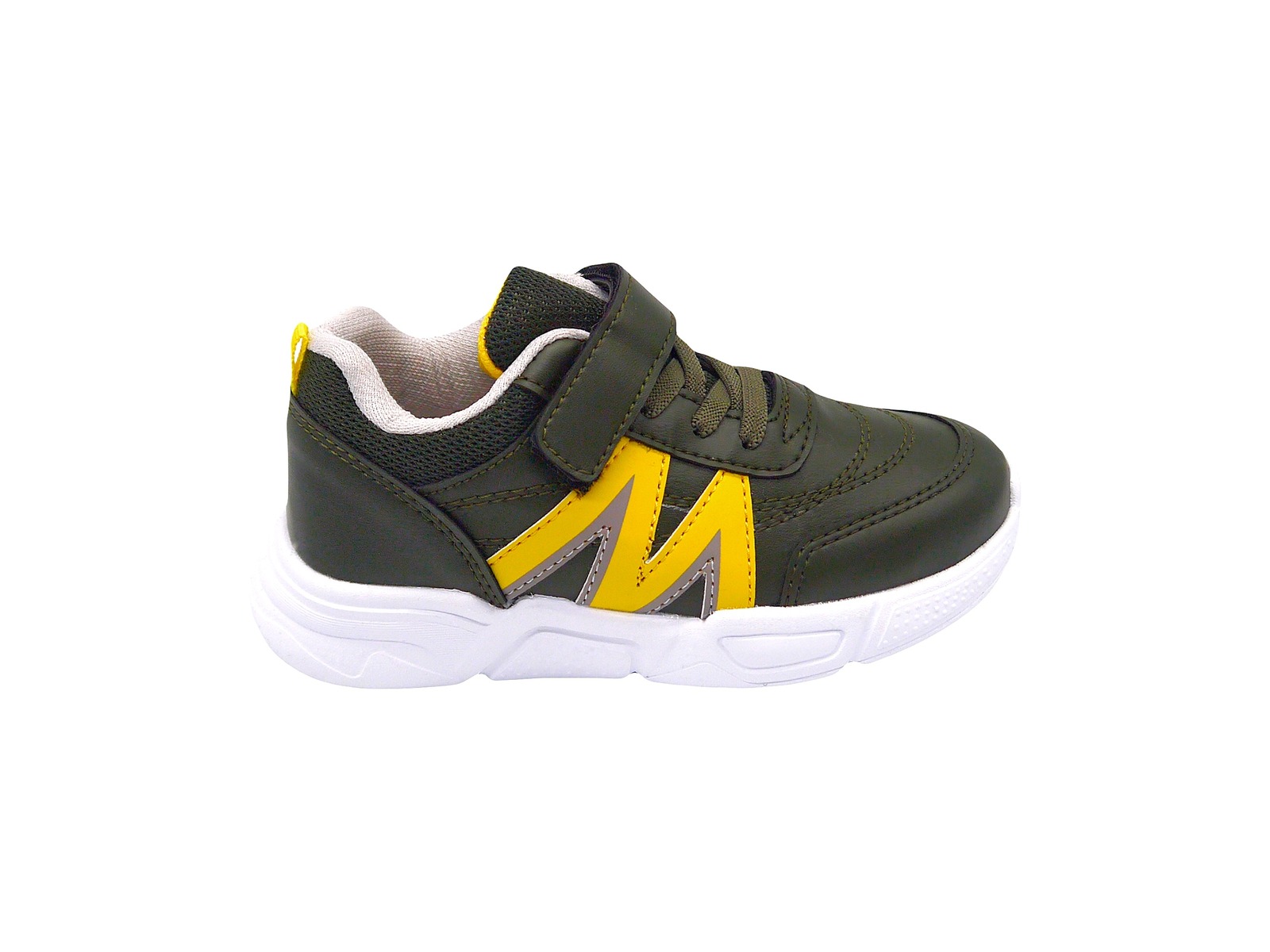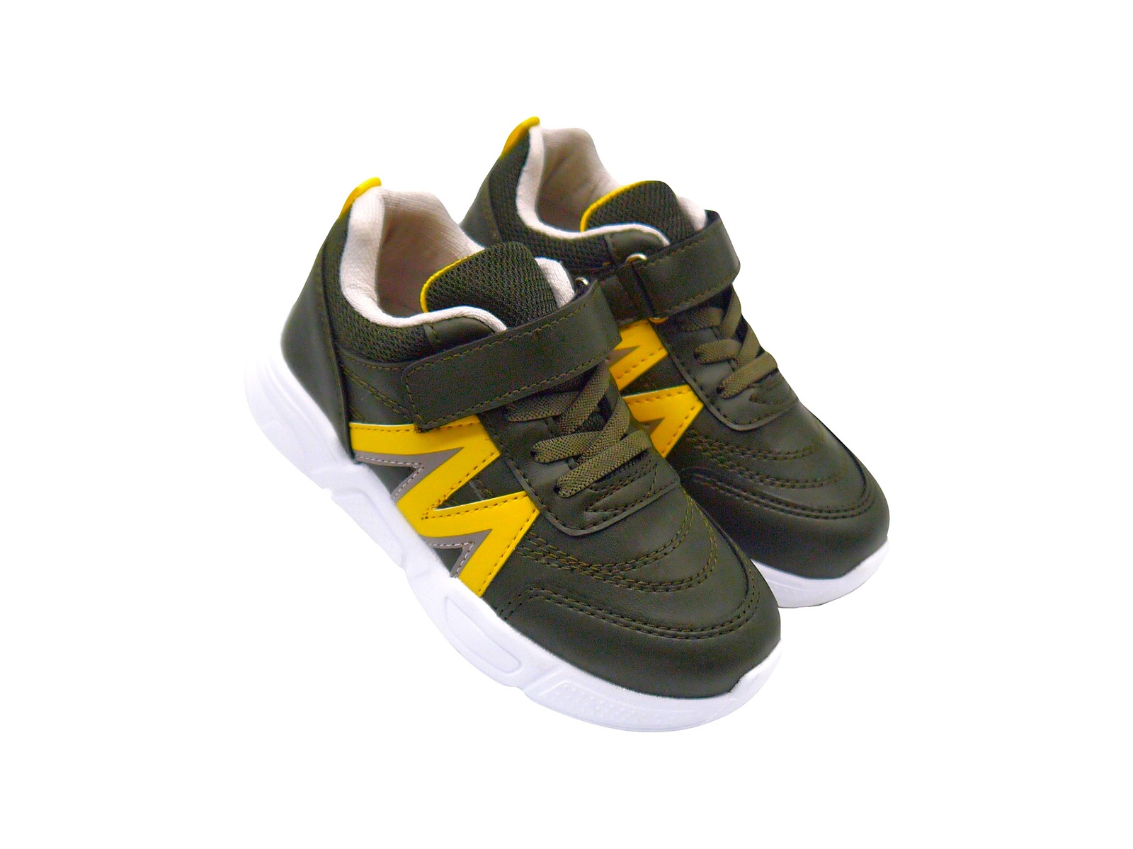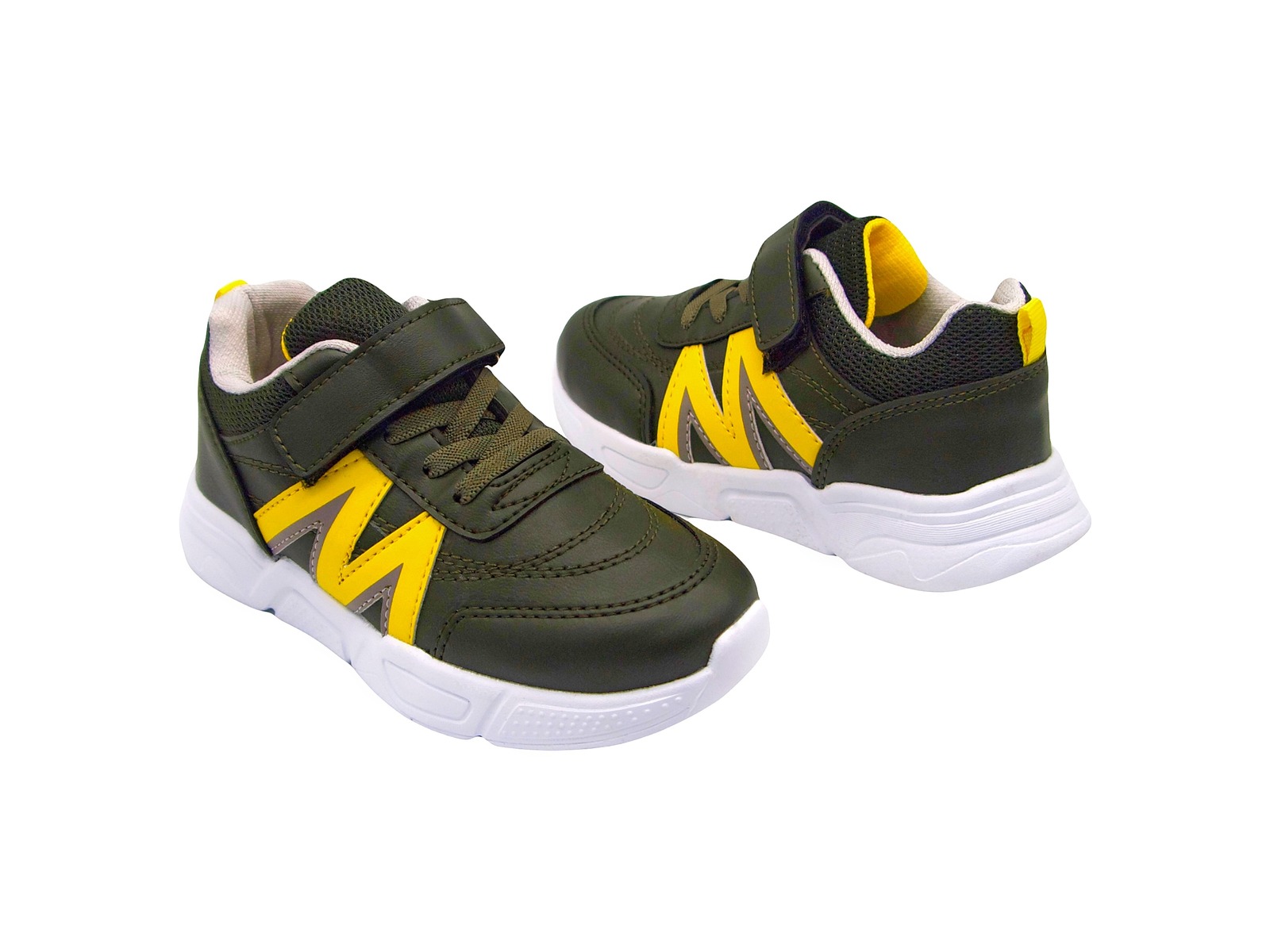 Кросівки хакі з жовтими смужками