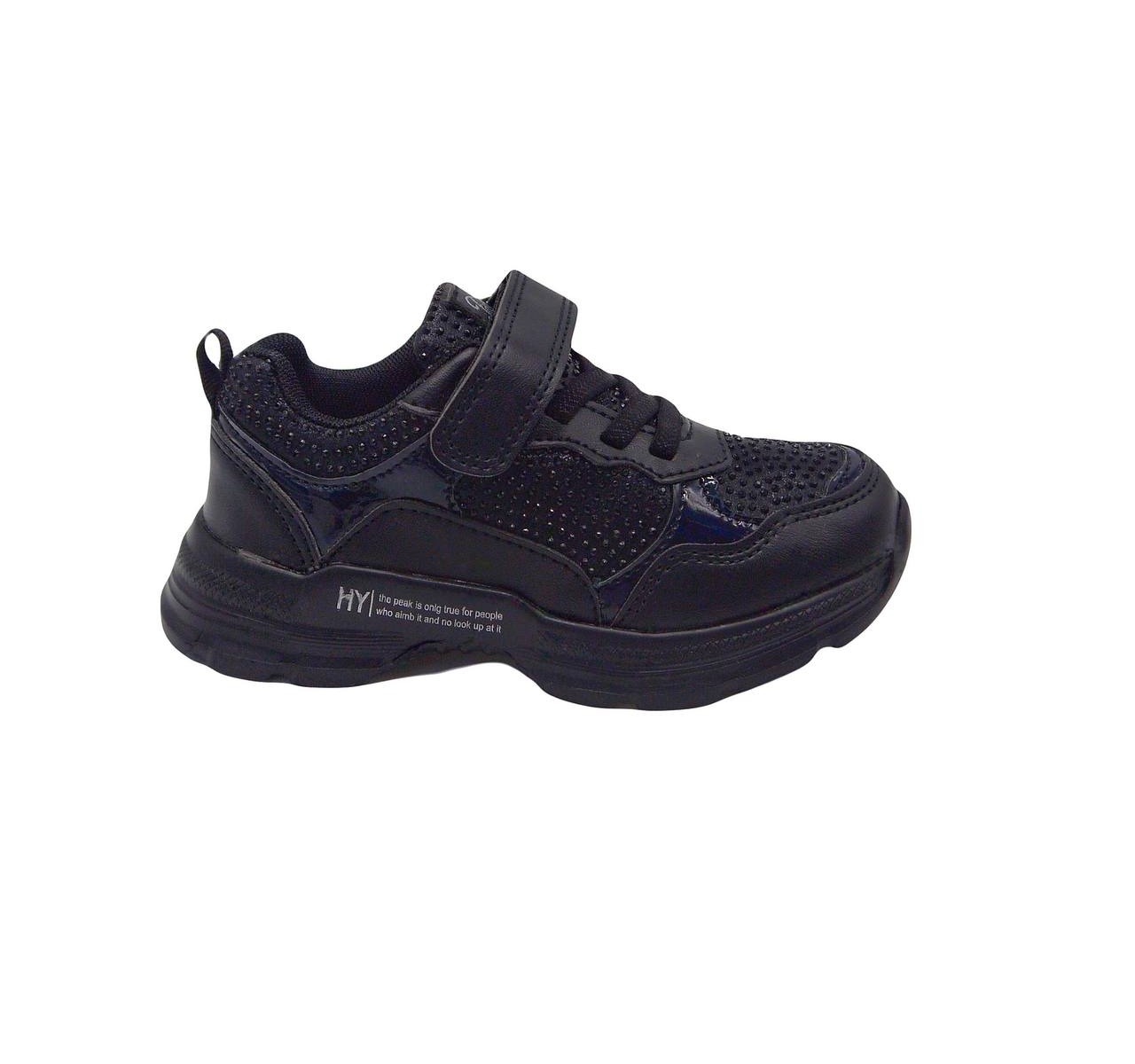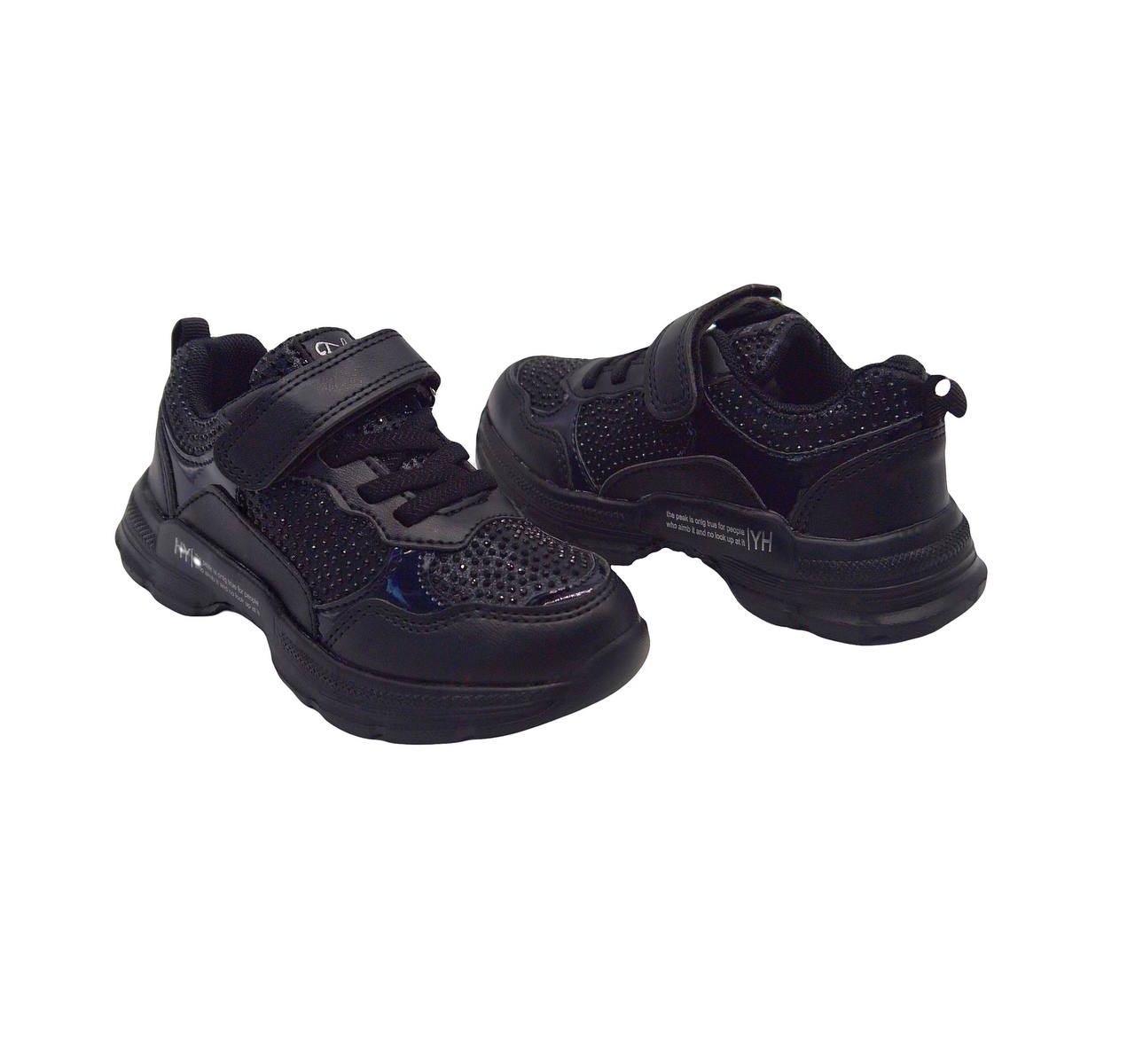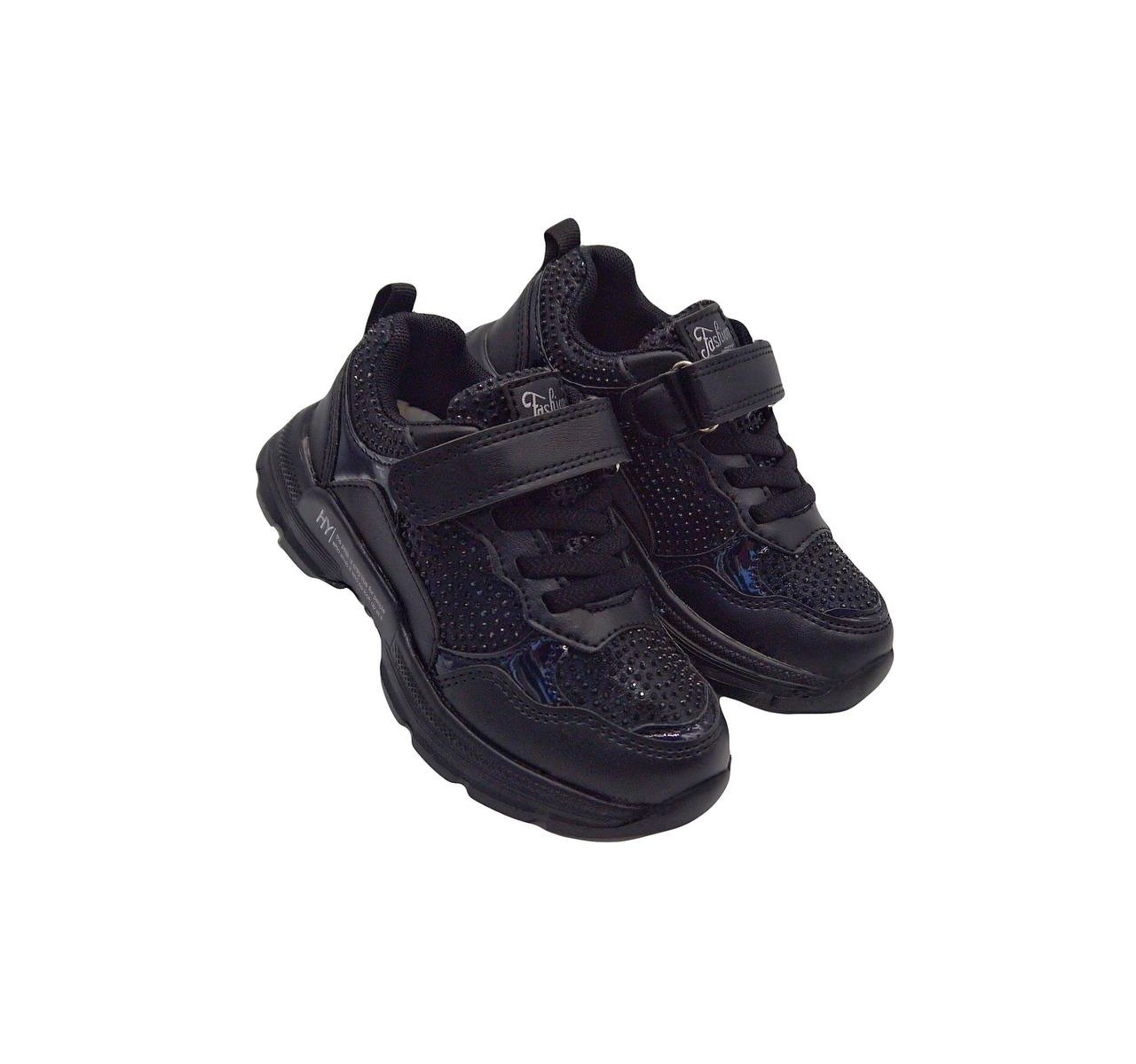 Матеріал верху виробу- екологічна екошкіра прикрашена блискітками камінчиками. Всередині виробу є шкіряна утілка з супінатором, задник жорсткий. Зручно взувати- завдяки шнурівці-резинці та липучці. Унікальність цієі моделі- вага - всього 150 грамів- надлегкі.