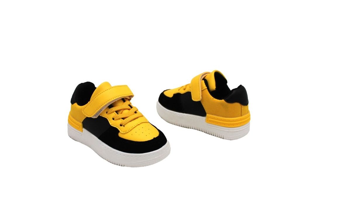 Легкие, стильные, ярко-желтые с черными вставками кроссовки для мальчиков и девочек на удобной подошве- хит продаж этой весны! Такая модель отшита из эко-кожи насыщенного желтого цвета, с черными вставками на белой подошве. Внутри есть кожаная стелька с супинатором и легкий подклад. Задник жесткий, с мягкой подушечкой внутри изделия. Кроссовки легко обувать, так как есть липучка и резиновая шнуровка. Кроссовки подходят на любой подъем. В таких ярких, стильных кроссовках Ваши детки будут выглядеть модно и стильно.