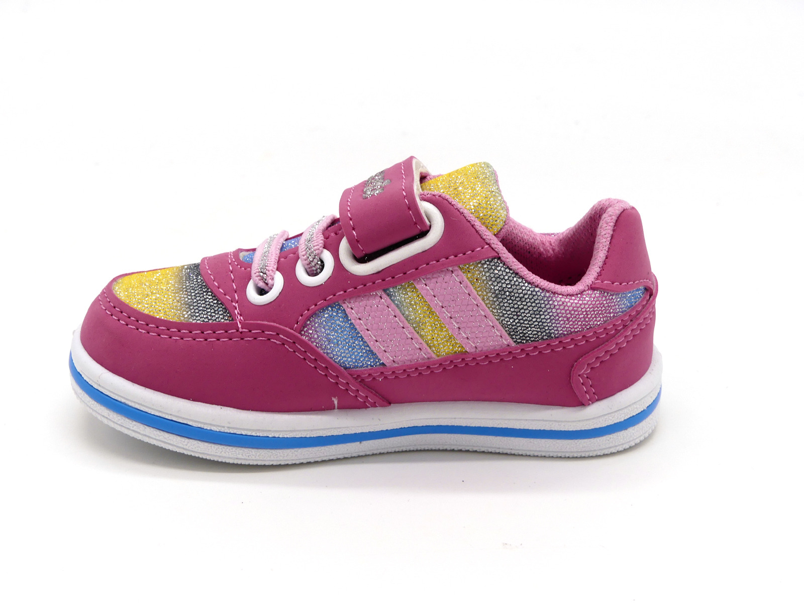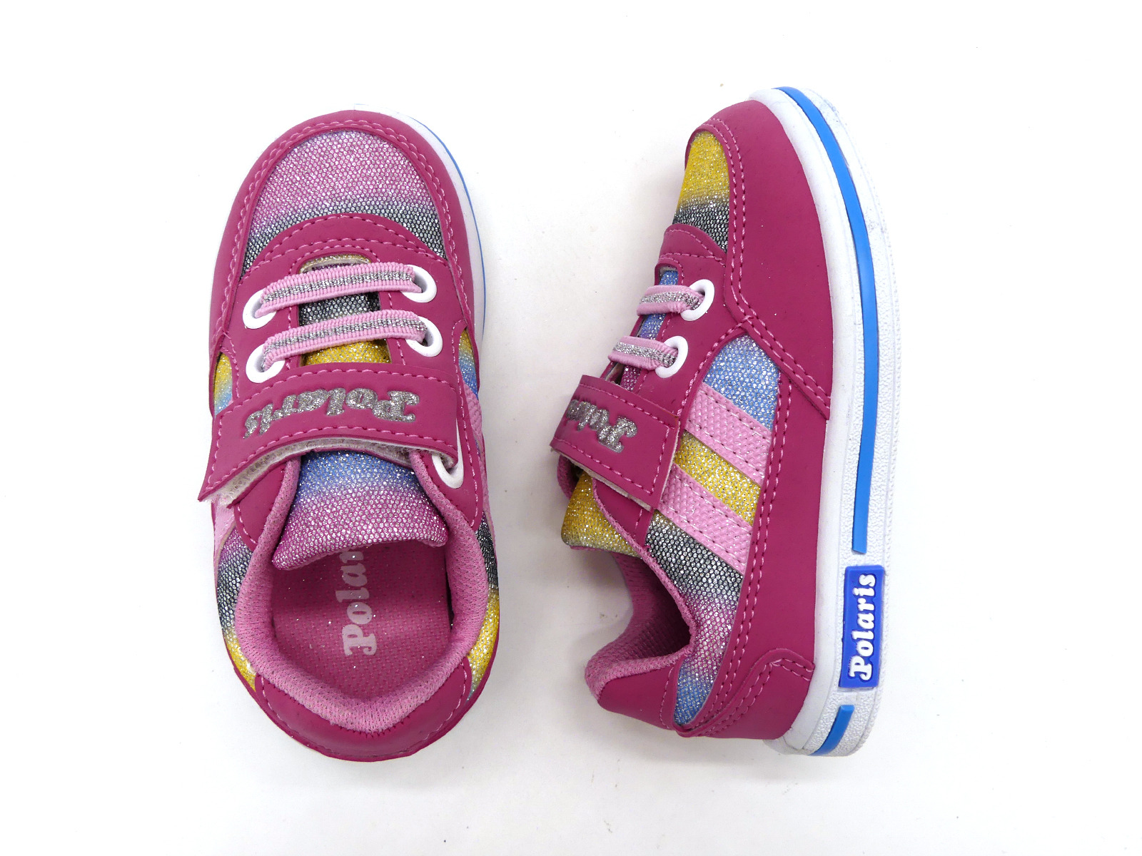Невероятные кроссовки-кеды от ТМ Polaris Kids для девочек радуют с первого взгляд! Цветовая гамма в виде красочной радуги в сияющем глиттере - сразу привлекает внимание. Комфортно застегиваются на липучку и фиксируются по подъему эластичной шнуровкой. Это легкая, удобная и красивая обувь для праздника и на каждый день добавит волшебства в даже самый пасмурный день.