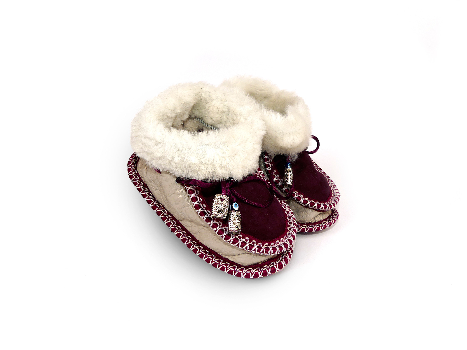 Пінетки Sandalik натуральна шерсть сіро-бордові