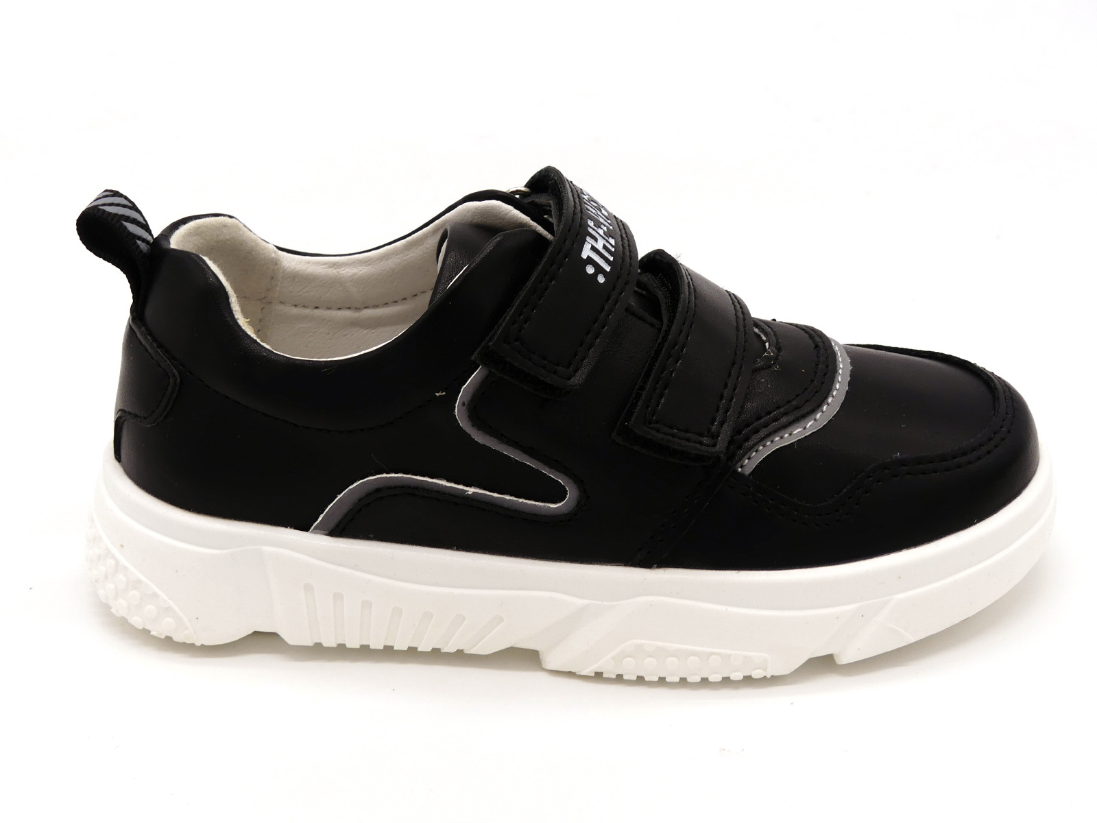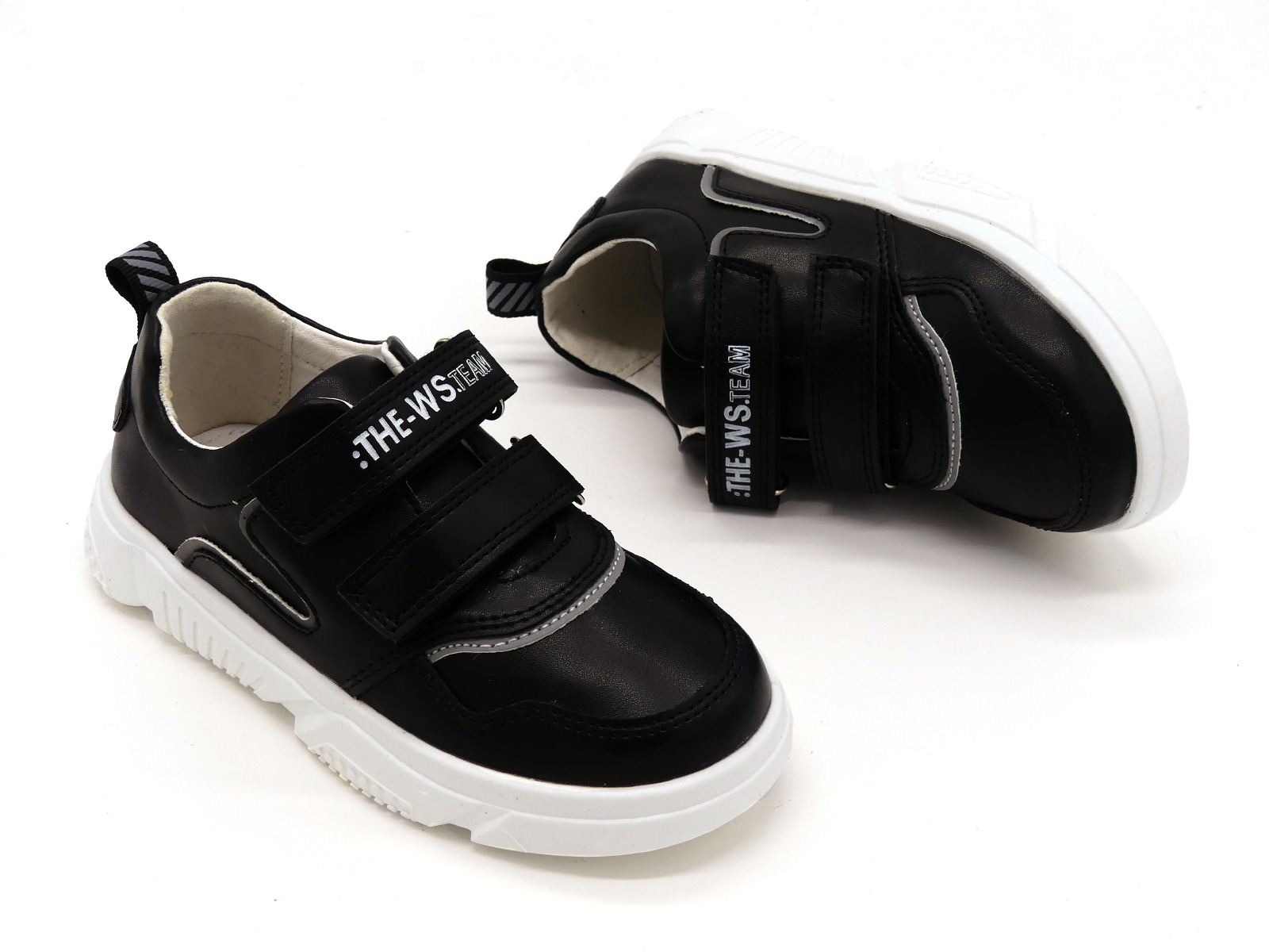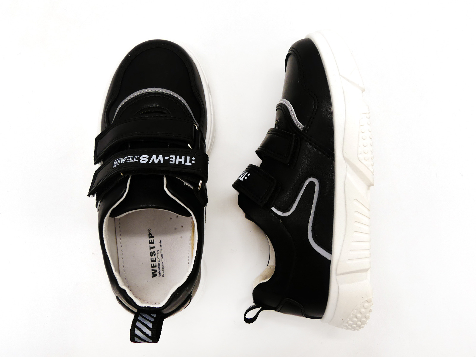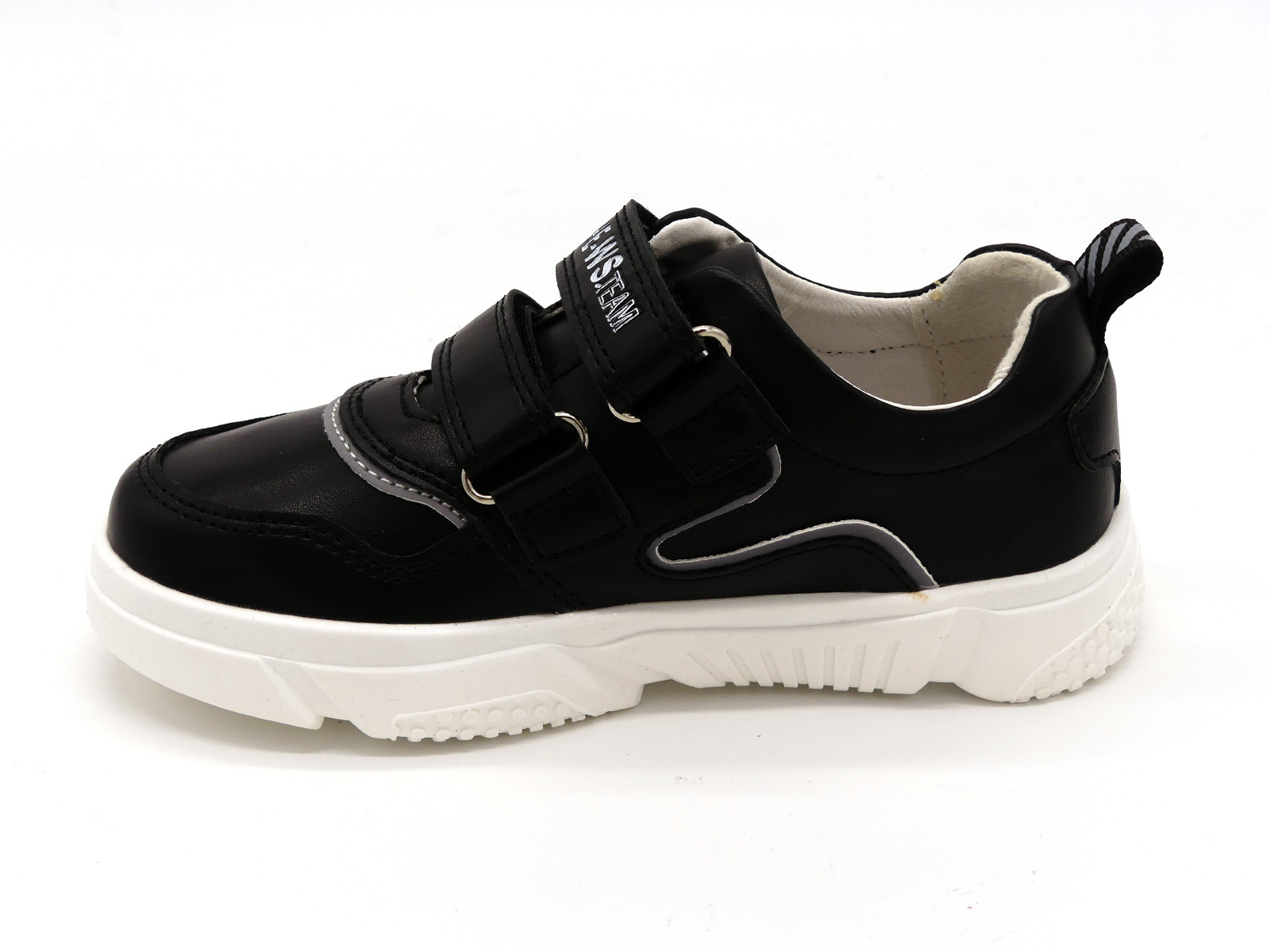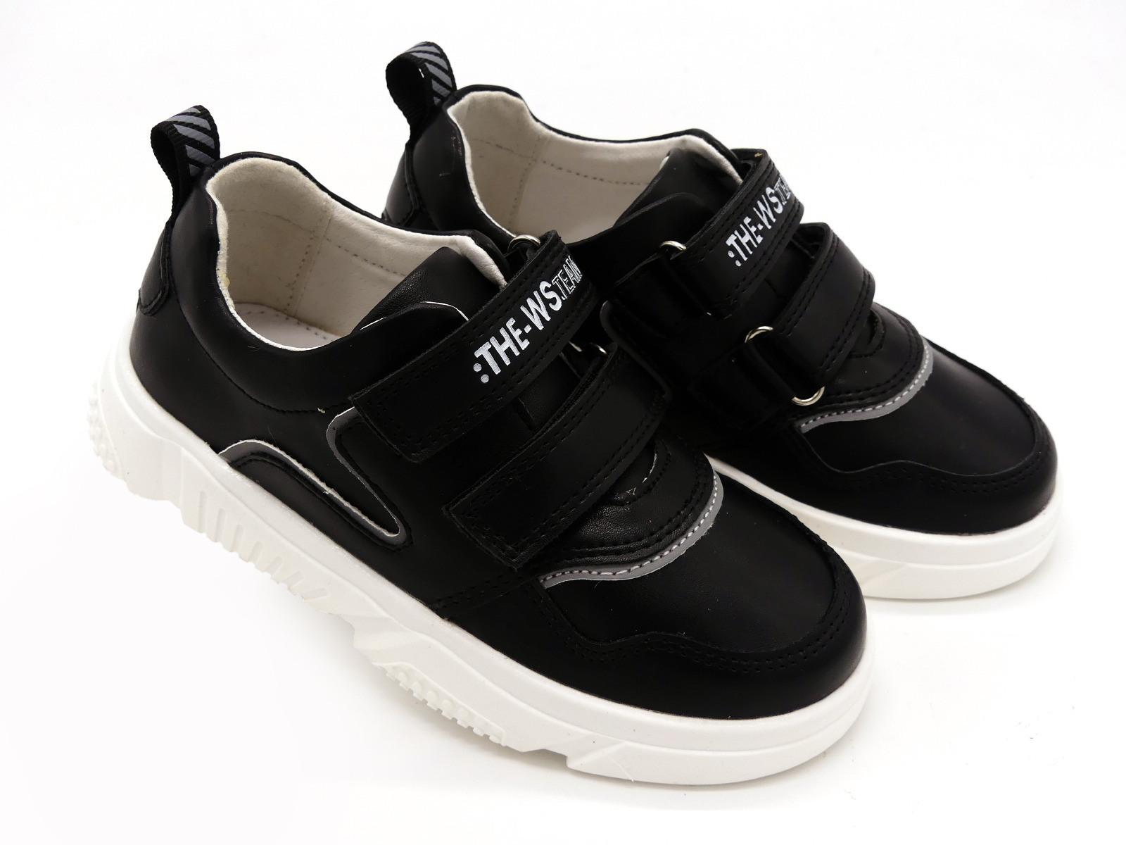 Спортивные туфли, кроссовки для мальчиков от ТМ Weestep - стильная, городская обувь в стиле кэжуал - элегантная и дерзкая одновременно. Выполнены из комбинированной кожи черного цвета, с серыми вставками. Внутри - натуральная кожа. Стелька - натуральная кожа с супинатором. Задник жесткий, фиксирует голеностоп. По подъему - две широкие удобные липучки. Прекрасное европейское качество в приятной ценовой категории.